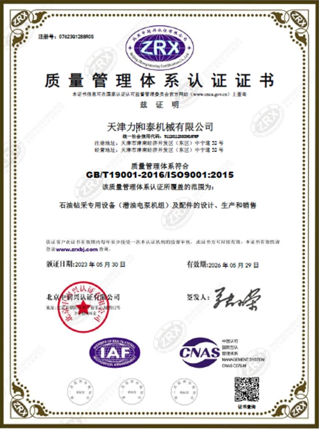 力和泰的泵采用最先进的制造工艺与技术,所有产品均按 API RP 11S2 标准进行100%工厂测试。