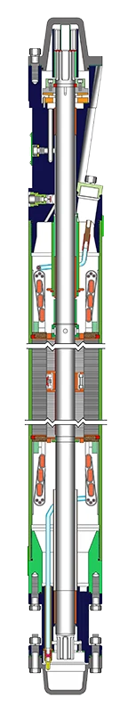 电机轴由高强度合金钢制成,呈空心结构,以确保电机油能够自由流通,对电机内的所有轴承触点进行润滑和冷却。